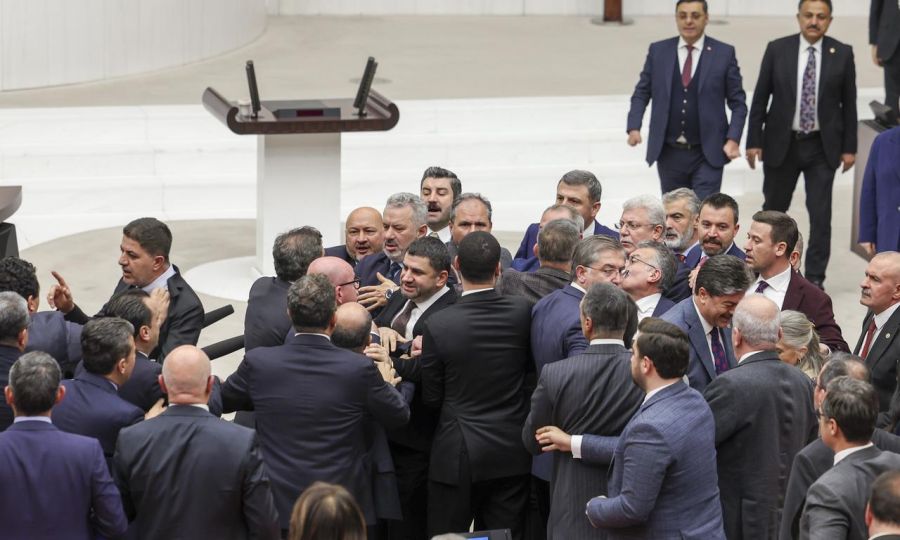 Χάος επικράτησε στην τουρκική βουλή κατά τη διάρκεια της συζήτησης για τον προϋπολογισμό, όταν ένταση ανάμεσα σε βουλευτές της κυβέρνησης και της αντιπολίτευσης μετατράπηκε σε σωματική συμπλοκή που διήρκεσε πάνω από δέκα λεπτά. Σύμφωνα με το turkiyetoday, η ένταση ξεκίνησε από λεκτική αντιπαράθεση μεταξύ του Μουσταφά Βαράνκ του ΑΚΡ και του Γκιοκχάν Γκιουναϊντίν του CHP.